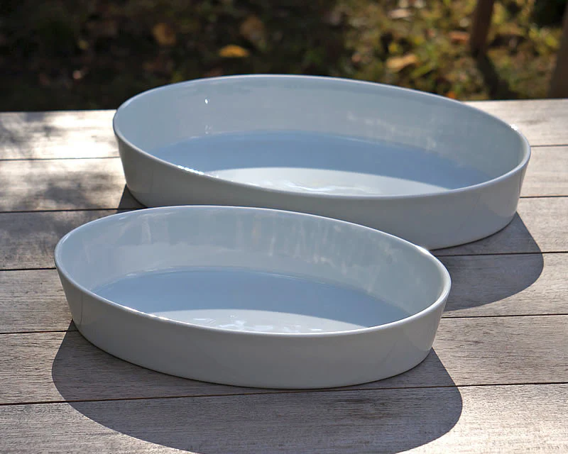 The Deep Oval Baker is available in two sizes. A truly beautiful serving piece that can mix with any dinnerware.