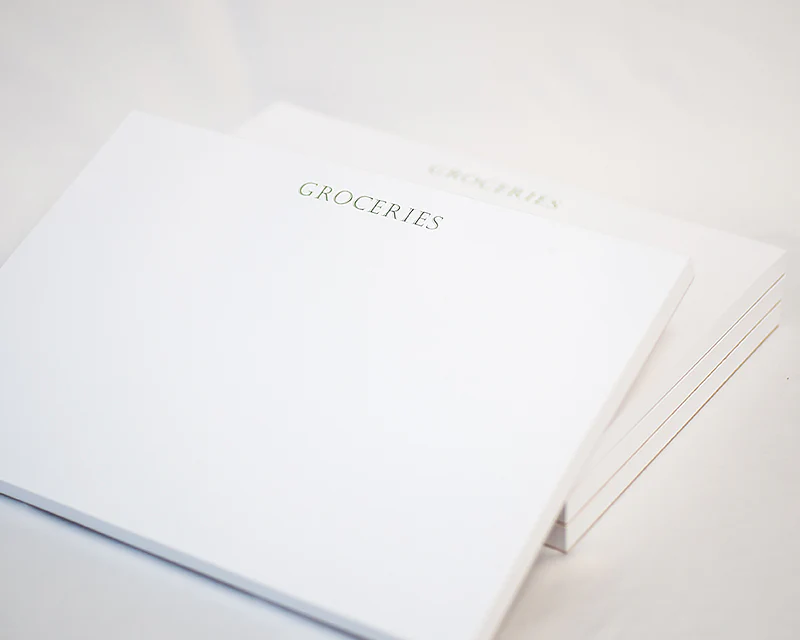 Our Grocery Pads make shopping for ingredients super easy! The wide-format allows ample space for quick notes, important lists or anything you need to jot down. Each pad containers 100 sheets. Printed on FSC Certified Paper. Made in the USA.