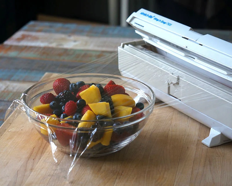 - Cuts plastic wrap quickly and accurately to save time and film